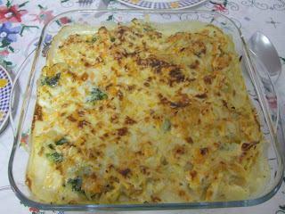 Ontem fiz este prato para o nosso jantar e para o nosso almoço de hoje (marmita), foi uma invenção de ultima hora pois tinha muito pouco tempo e não tinha deixado nada preparado, e tinha uns brócolos a ficar tempo de mais no frigorífico, e assim, saiu esta pescada gratinada.